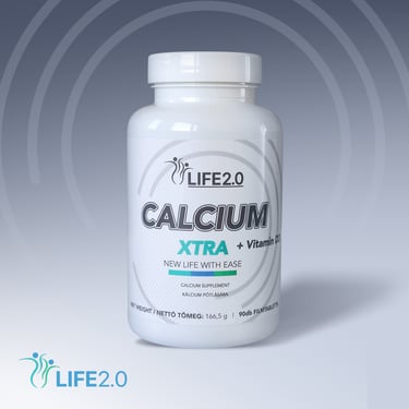LIFE2.0 Calcium Xtra + D3 vitamin tabletta, mely a jól hasznosuló, szerves kalcium-citrátot tartalmazza, s napi 3 tabletta hosszabb távon is fedezi a kalcium szükségletet és segít megőrzi a csontok egészségét.