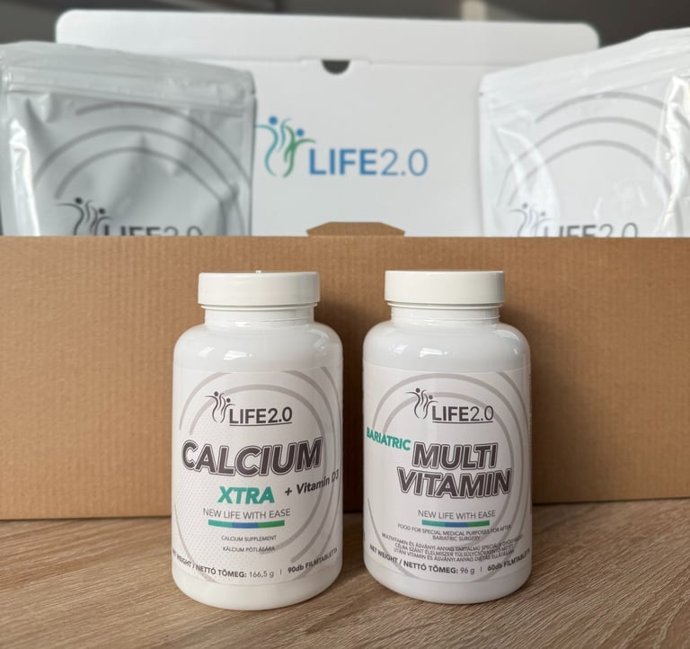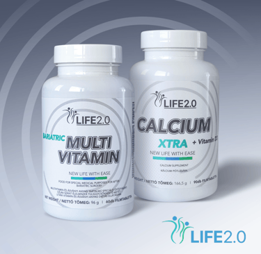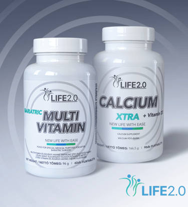 Új termék: LIFE2.0 Bariatric Multivitamin tabletta, mely változatlanul tartalmazza a szükséges vitamin- és nyomelemeket (a kalcium kivételével), azaz többek között magas dózisban vasat, B12 vitamint és számtalan nyomelemet, amit a bariatriai műtétek után szükségesnek tartanak. Adagolása: sleeve műtét után napi 1, bypass műtét után napi 2 tabletta.