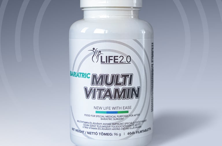 LIFE2.0 multivitamin® por tartalmazza az összes vitamint és ásványi anyagot, amire szüksége van bariátriai műtét (gyomor bypass vagy sleeve) után. Túlsúlycsökkentő műtét után bizonyos vitaminok felszívódása jelentősen csökken, leginkább a vas, kalcium, D vitamin és a B12 vitamin felszívódása érintett. Emiatt műtét után vitaminok szedésére feltétlenül szükség van, mert nem megfelelő bevitele esetén tartós egészségkárosodás léphet fel, vészes vérszegénység (anémia) alakulhat ki, súlyosabb esetekben pedig idegrendszeri károsodás és csontritkulás is előfordulhat.